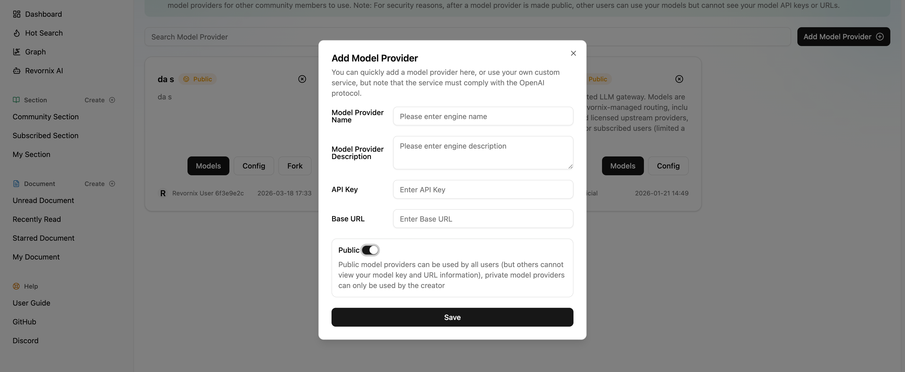 Revornix supports custom third-party models, so you can configure the models you want to use.