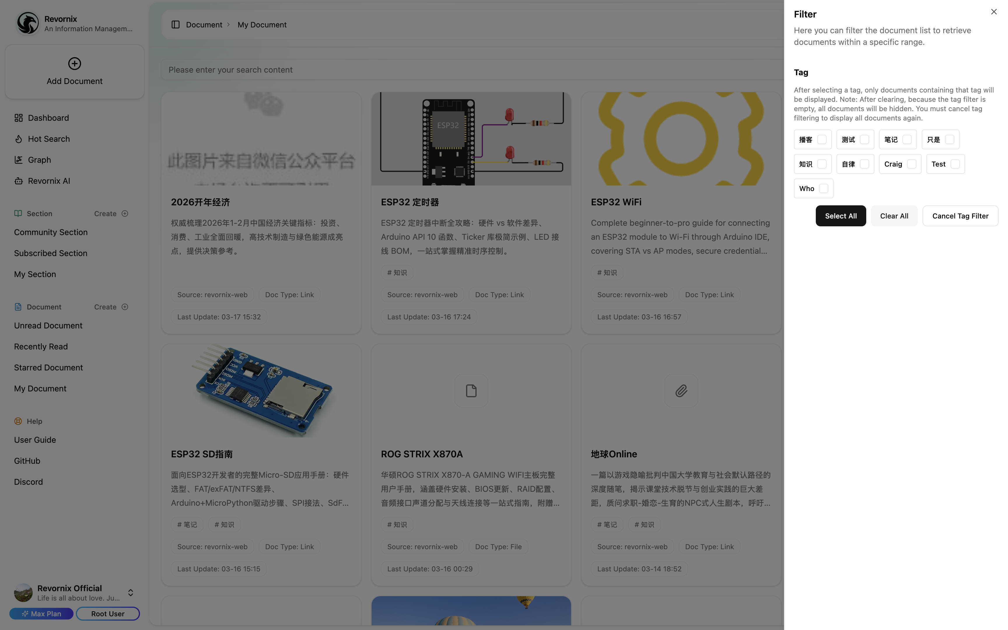 All documents collected into Revornix can be managed in one place.