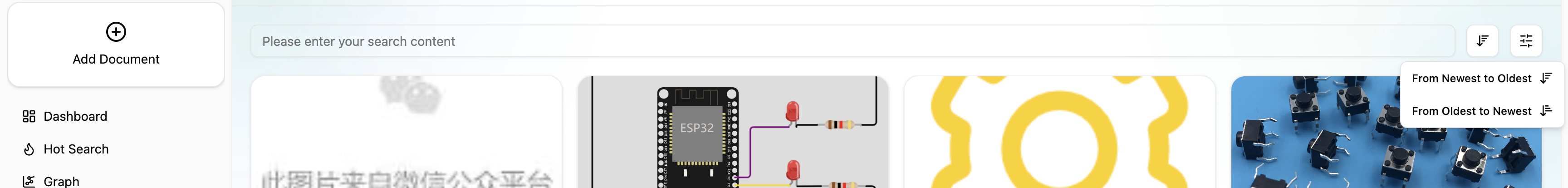 Supports exact search by document title and content (based on Postgres), and global fuzzy search (based on Milvus).